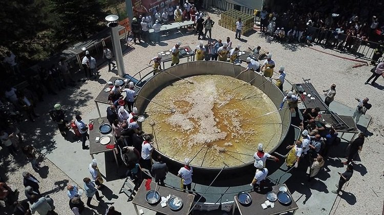 Rekor büyüklükteki tavada 600 kilogram ciğer pişirildiğini kaydeden Gürkan, Guinness Rekorlar Kitabına kaydolduktan sonra dev tavanın turizm destinasyonu için sergileneceğini sözlerine ekledi.